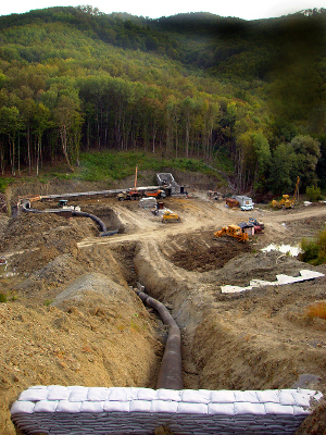 Первый — это трубопровод на российском сухопутном участке диаметром 1400 миллиметров на равнинной части и 1 200 миллиметров — на горной. Он протянется на 370 километров — из района Изобильного Ставропольского края в район Джубги Краснодарского края на побережье Черного моря.